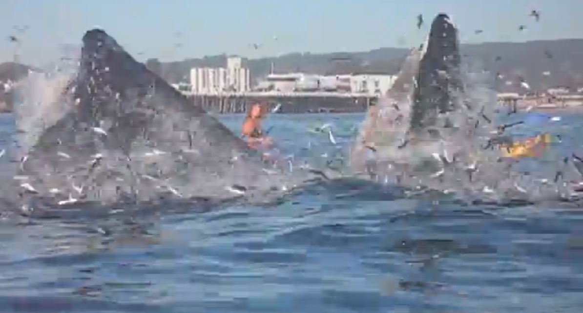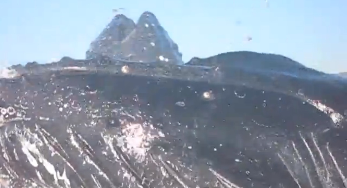 Whale/Surfer video shows unique closeup of how baleen whales get it done
