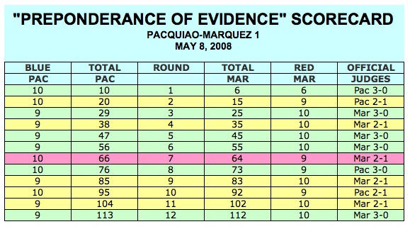 Breaking Down Pacquiao-Marquez I with A "Preponderance of Evidence" Scorecard