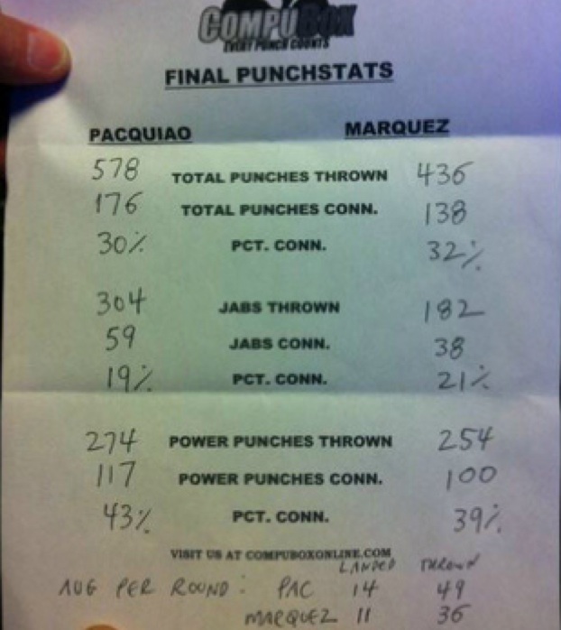 Here is the actual Compubox “Final Punchstats” report made available just after the fight: (click to enlarge)