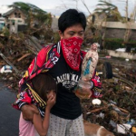 I came across this post on Facebook and couldn’t stop looking at the picture. The elements are just somehow connected in such a way as to say it all … the mother, the daughter being held so close, the statue, the faces covered to protect from the stench of death, the dog . . .the rubble… the trimmed hair and Calvin Klein t-shirt reminding us that this distressed mother is not part of some remote “other” world — she’s part of our world, the so-called modern world, and look what shes dealing with. When a picture comes together in this way — it’s what they give Pulitzer Prizes for. I hope it impacts people the way it impacted me.